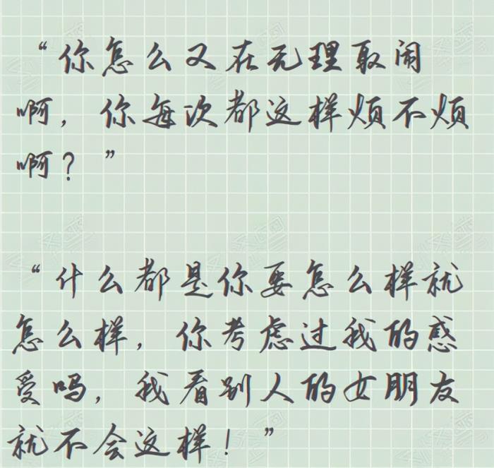 女生会因为情绪提出分手,这个时候是希望男生能够哄哄自己,希望能够理解自己是在发脾气,而不是说:“你怎么又在无理取闹啊,你每次都这样烦不烦啊?”
