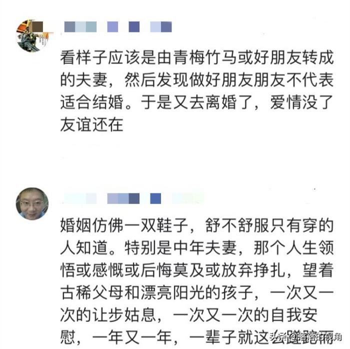 有网友表示,可能两个人过去就是从好朋友变成了夫妻,然后发现好朋友可以做,但不代表适合结婚,于是又去离婚,重新做回好朋友。