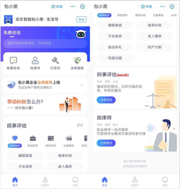 包小黑是由前阿里巴巴算法科学家孙林君设计的一款人工智能法律咨询工具,用户打开支付宝搜索“包小黑”,填写相关信息即可免费获取法律建议。据悉,目前包小黑支付宝小程序已涵盖72个常见的法律纠纷类型,212种法律诉求,并被浙江、江苏、广东等多地司法部门引用为民间调解员的新“武器”,参与助力当地的普法宣传教育、优化司法资源配置。