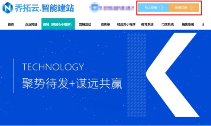 2.搜索进入乔拓云网,注册登录账号进入操作后台,点击【商城】中的【去管理】进入小程序商城的后台管理页面。