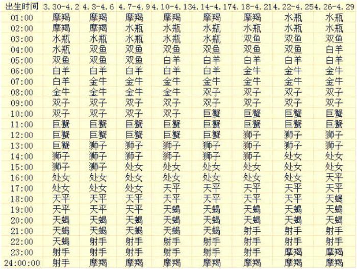 四月出生的12星座上升星座查询表