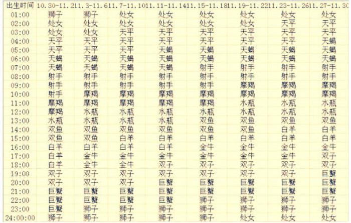 十一月出生的12星座上升星座查询表