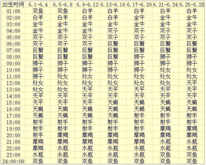 六月出生的12星座上升星座查询表