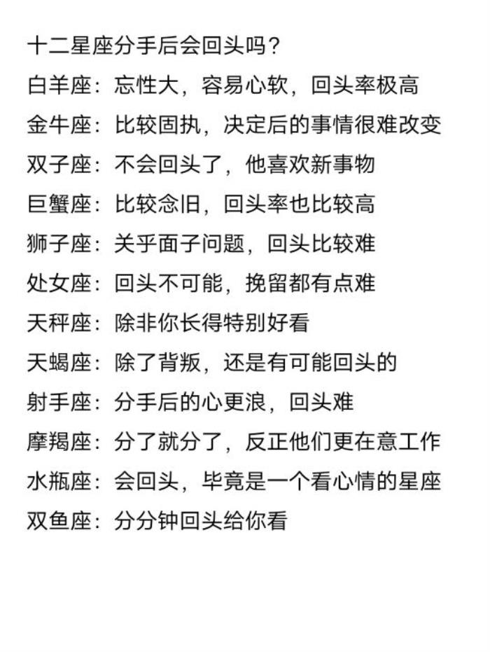 十二星座分手后会回头吗?