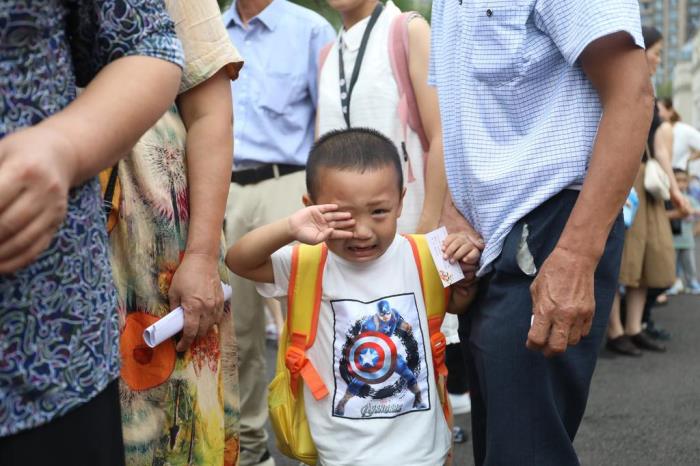 有的小朋友手舞足蹈,满是抑制不住的狂喜,有的小朋友,一到校门口就开始后悔了——“什么!上学?我要回家!”还有的小朋友脸上虽然挂着泪花,但还是听话的和家长挥手再见。