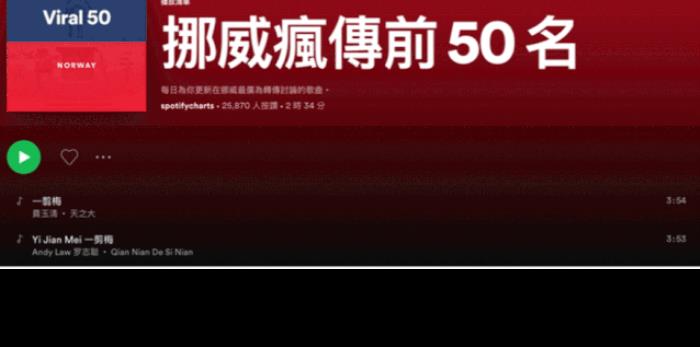 外国的音乐平台上,《一剪梅》直接屠榜。
