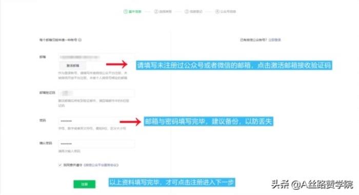 接下来等待邮箱接收通知信息,验证码激活,选择自己想要的账号类型进行注册,如选择服务号。