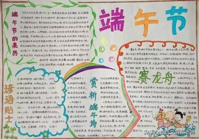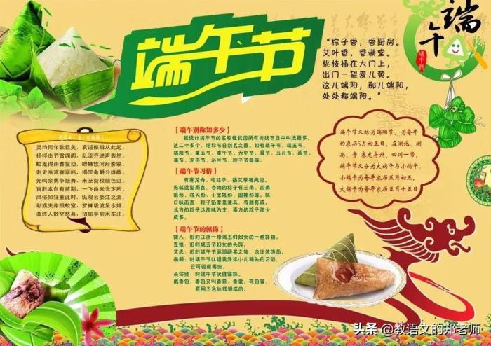 端午小长假有三天,如果郑老师没有猜错的话,你的假期作业中是不是有:写一篇有关端午节的作文,做一份有关端午节的手抄报。哈 哈,你是不是正在头疼该怎么去完成呢?下面郑老师为大家搜集了许多美文佳句,诗词名句,还有精美的手抄报,赶快一起来学习吧!