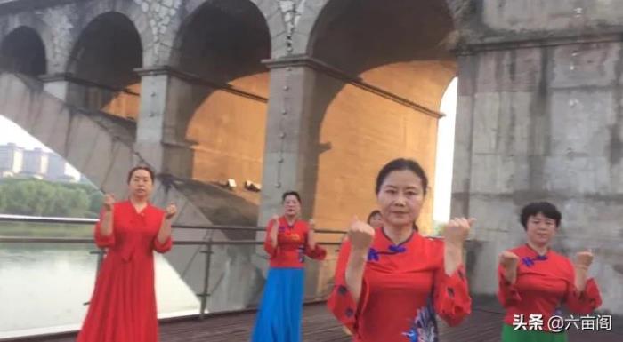 端午节清晨,老姐姐们身穿节日盛装在河边排练节目