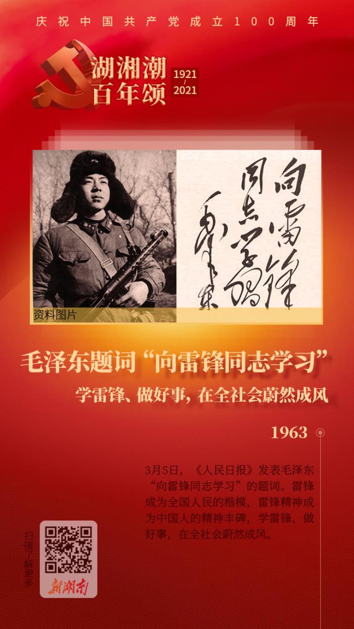 1963年3月5日,《人民日报》发表毛泽东“向雷锋同志学习”的题词。雷锋成为全国人民的楷模,雷锋精神成为中国人的精神丰碑,学雷锋、做好事,在全社会蔚然成风。