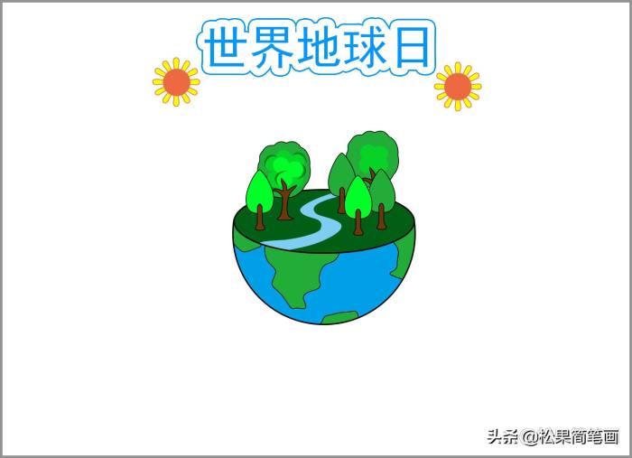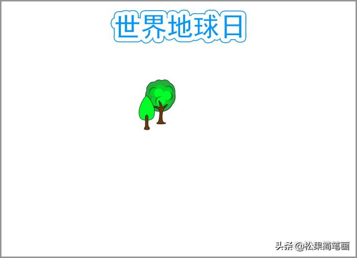 我们先画出半个地球和上面的树木、绿地和河流。先用黑色的画笔画出小树的轮廓,用绿色和浅绿色的画笔涂上颜色。