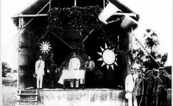 孙中山与宋庆龄在黄埔军校合影。