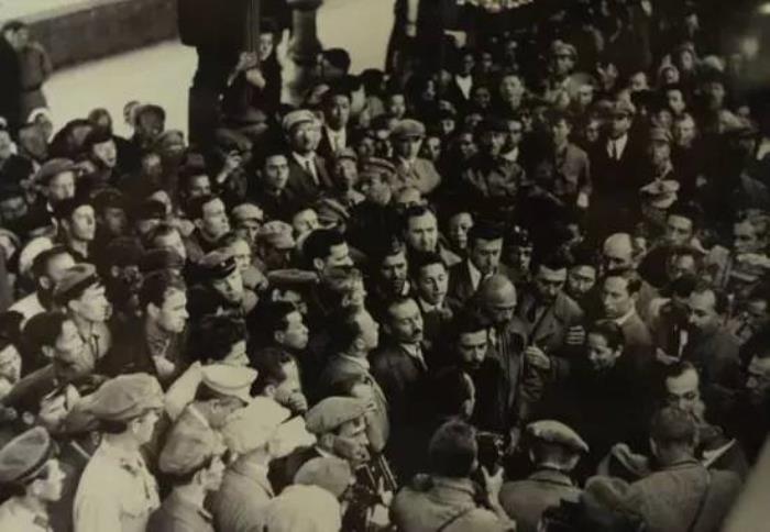 1927年9月6日,宋庆龄决定按照孙中山遗愿访问苏联。图为宋庆龄到达莫斯科车站受到各界代表的热烈欢迎。