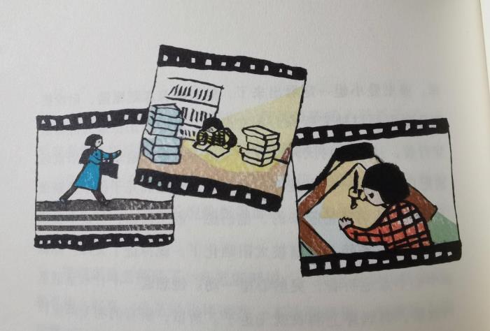 她看到,当一笔一笔的画出自己心里的那个世界时,她心里一大块一大块的痛苦,就分泌出了一种诗意,变得润滑和闪亮。本来石头一样沉重结实的痛苦,在粉笔和纸发出的唰唰声里,神奇地变得透明而轻盈,好像那块树脂。