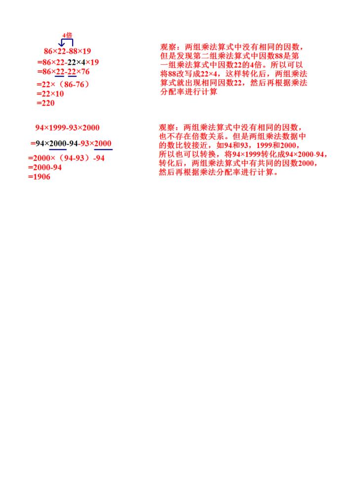 理解方法:观察这两组乘法算式有共同的数据387。那么第一组乘法算式可以理解为有46个387的和,第二组乘法算式可以理解为54个387的和,加起来一共不就是100(46+54)个387的和吗,也就是38700。