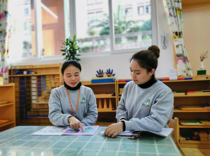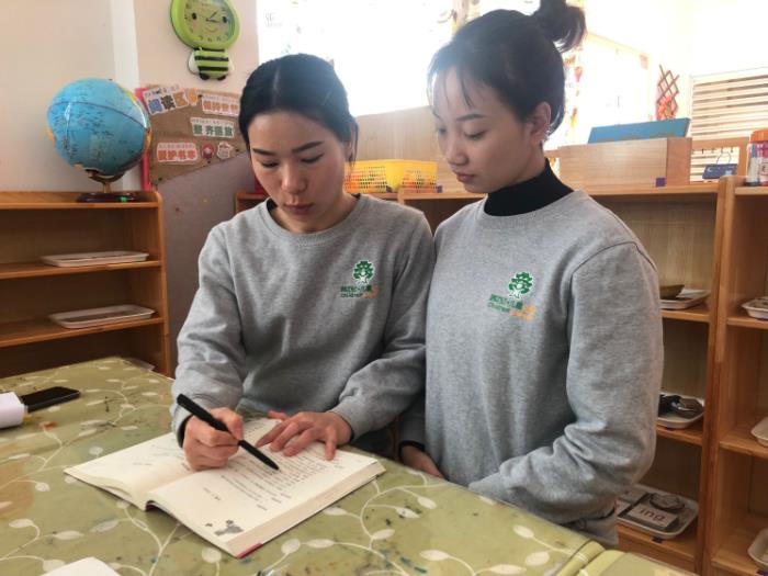 老师们平时有着繁重的教育教学任务,根本没有另外的时间参加比较系统、全面的培训,所以基本上新教师的成长与学习是一种无计划的、放任自流的状态存在着,这对新教师的成长非常不利。通过老教师带徒弟的形式可以让新教师在较短的时间熟悉蒙氏教育教学,尽可能地让老师们少走弯路。例如关于蒙氏课堂标准的实际性课堂、应急事件处理、教师语言、教态、教学常规等可以在师傅的指导下短时间得到规范。