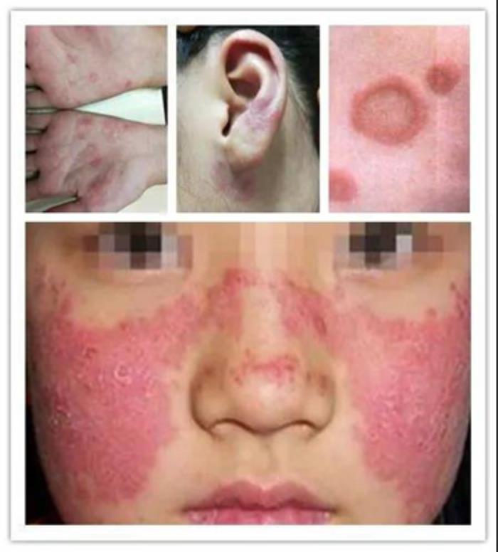 约有80%的红斑狼疮患者前期会出现皮疹,多是脸颊两边出现蝶形红斑,很容易被误认为过敏,但是过敏导致的红斑会有红、肿、热、痛等现象,红斑狼疮的红斑则不会,且按压了也不会褪色。
