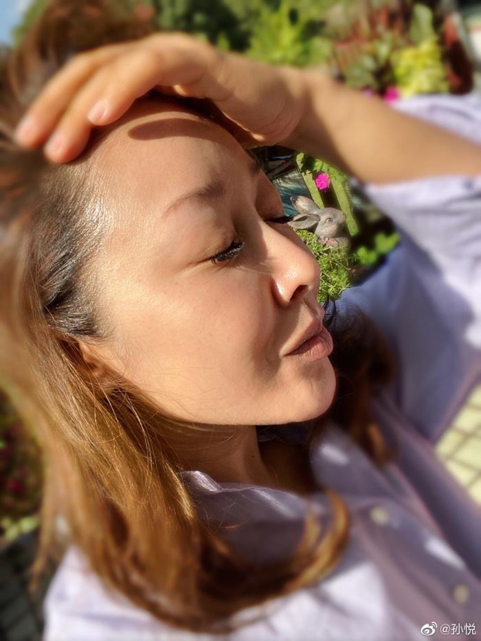 正面照也很能打,连最容易暴露老态的眼周皮肤也一点问题也没有。不过,孙悦的嘴角似乎有点奇怪,微笑的弧度也太大了吧。
