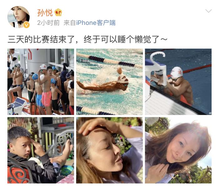 近日,歌手孙悦在微博上更新了一则动态,并配文:“三天的额比赛结束了,终于可以睡个懒觉了~”原来,孙悦是陪着儿子去参加游泳比赛了呀,真是个好妈妈。