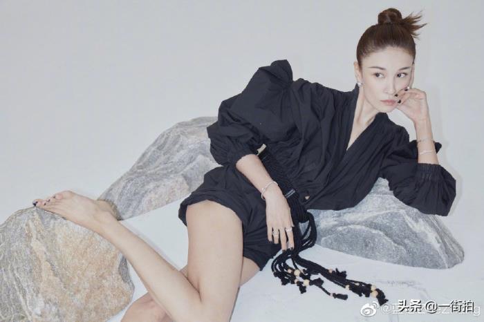 张蓝心作为一个武打女星,却拥有了超模身材,这大长腿是娱乐圈中少有的名品腿了。这件黑色的连体裤上半身比较宽松,下半身是超短裤,既显腿细又显腿长,当然张蓝心的腿本来就很长,在这件衣服的衬托下显得更逆天了。想要显腿长的小姐姐们可以选择这类拉高腰线的连体裤,它能让你的整个下半身看起来很长,是小个子的福音。而显腿细,就要上半身穿得宽松一些,像是宽大的T恤,或是张蓝心这样的泡泡袖,都可以衬托下半身瘦。