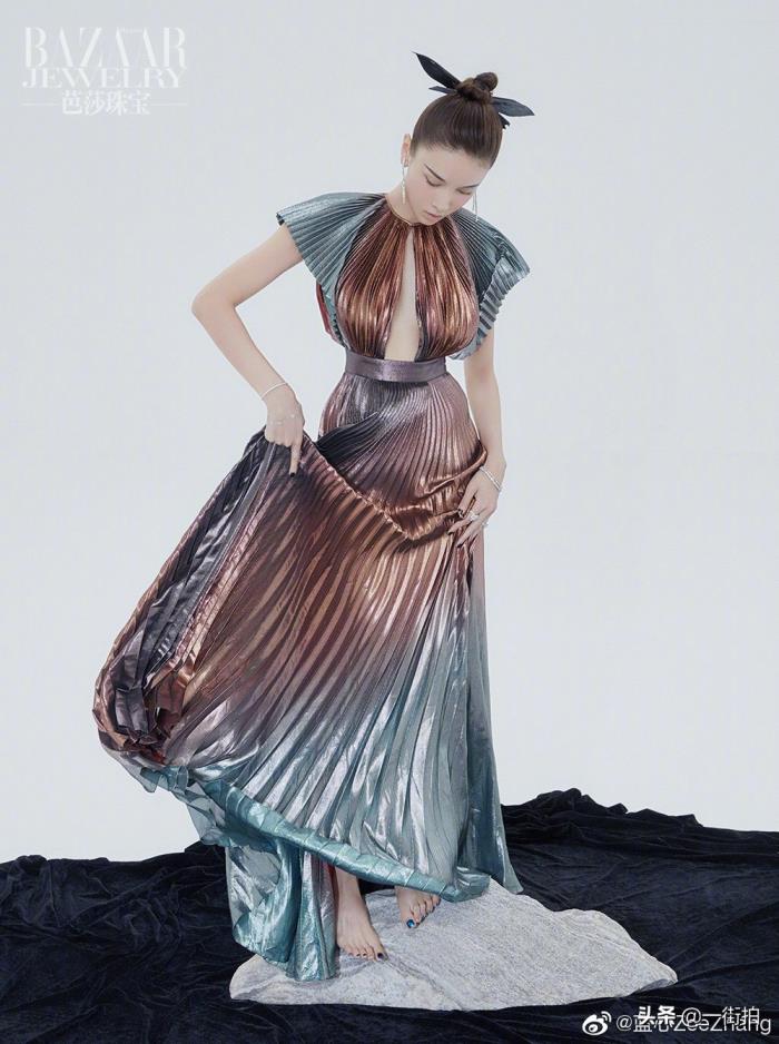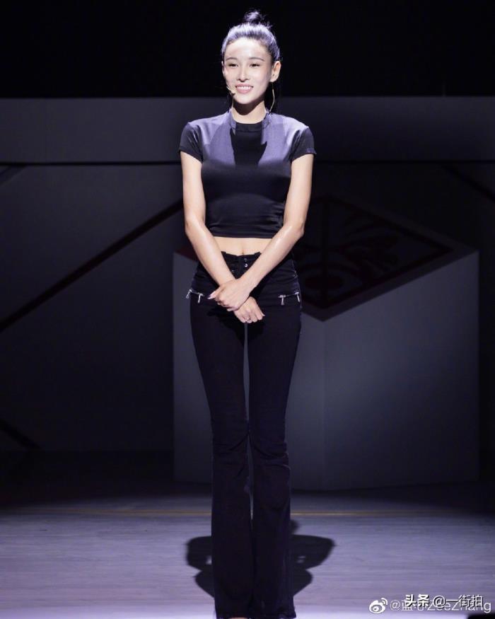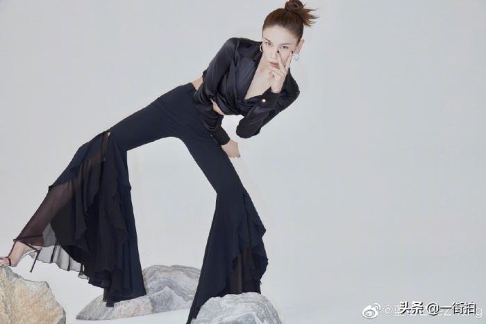 张蓝心不仅腿长,腰还很细,这件短款上衣露出腰肌,看上去也是拥有A4腰的人。这条上紧下松的裤子恐怕也只有张蓝心这样的大长腿才能驾驭了,穿上超高跟的高跟鞋,张蓝心的气场不止1米8了。一身黑的造型非常酷,和张蓝心的形象很符合,看来她还是很会选择适合自己的衣服。