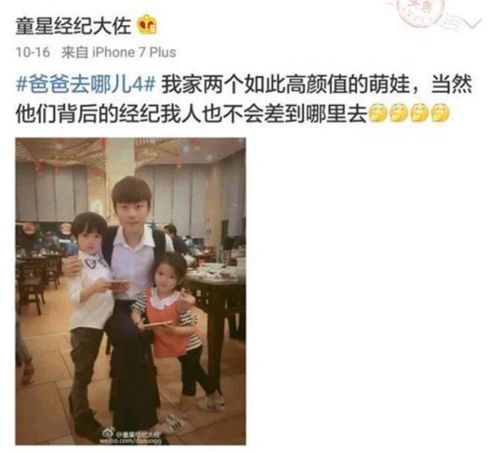 而在大佐的微博里,我们也知道了阿拉蕾跟李亦航参加爸爸去哪儿是海选的,而他也一直在努力推送这两个萌娃。