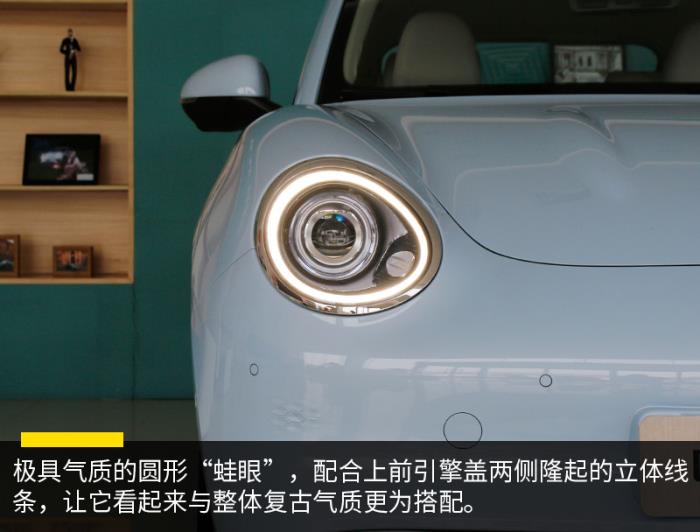 新车外观采用大量圆弧曲线,体现出欧拉好猫圆润复古的视觉效果。当这台复古猫摆在你的面前时,免不了会多看它几眼。2022款欧拉好猫新增了莫兰迪色系奶油绿外观,需加价2000元进行选装。