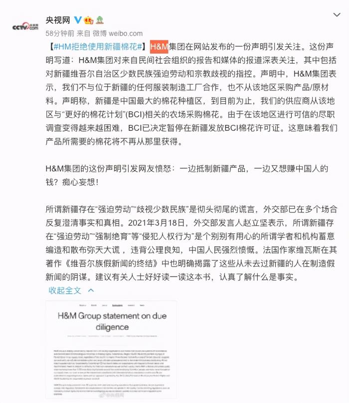 新疆棉花事件的导火线:BCI组织和其成员H&M发表声明宣称所谓“抵制中国新疆棉花产品”,并且BCI已决定暂停在新疆发放BCI棉花许可证。原因大概是是基于BCI标准中的“棉花的获取应当从体面劳动而来原则”。