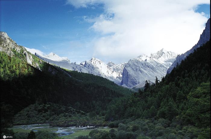 四川省甘孜州的稻城给游人印象最深的就是他缤纷的色彩和庄严的神山,仙乃日神山雪峰洁白无暇,一尘不染,山腰处茫茫林海、飞泉瀑布于其间。(图片来源:东方IC)