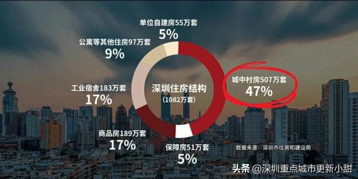 根据深圳市住建局官方数据显示,截止2020年初全市住房总量约为1082万套,其中城中村507万套,占据了深圳住房的半壁江山,这些城中村为深圳住有所居做出了巨大贡献,有效解决了当时人口居住问题。直到现在,在深圳1756万的租房人数中,有1100万左右住在城中村,城中村为深圳前赴后继的奋斗者提供了容身之所,有着不可磨灭的功劳,但是随着深圳的快速发展,这些脏乱差的城中村变得有些不合时宜,影响了城市面貌阻碍了产业转型,而且经过了40多年的发展后,深圳的土地问题凸显,地少人多,加上土地结构失衡,一半以上的土地都是不可开发的生态红线用地,而在可开发的土地中,存量住宅用地已不足1%。