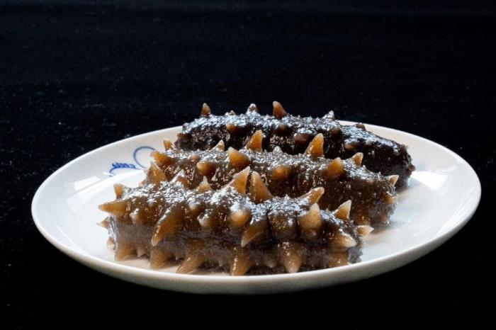 四、看口感好的海参煮熟后,口感比较的绵软。不好的海参煮熟后味道没有好海参的弹性。海参表面没有毛刺,海参吃起来也没有什么味道。好的海参切开后,可以看到里面的白色干粉带有部分点状黑点。不过泡发好的海参色泽分布均匀,颜色比较透亮,韧性较强,口感硬度适中,浸泡久的话也不会发脆,容易蒸熟烂,并且口感脆度适中,大多数人都能吃到所需要的产品。