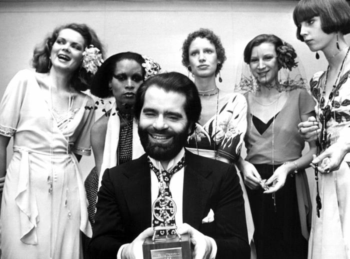 不过这场看似平凡简单的爱情,却因为另一位时尚大师圣罗兰先生(Yves Saint Laurent)的介入而起了波澜。时间回到 1954 年,一场时装设计大赛,卡尔在大衣项目中夺冠,而圣罗兰则是他项冠军,两人因而相识成为好友。而后在时尚设计领域打拼,圣罗兰年纪轻轻 21 岁进入 Dior 担任首席设计,而后又自创个人品牌 YSL,看似事业运极顺,而此时的卡尔仅是 Balmain 的助理设计师,好友的关系因为事业成就的不同开始渐行渐远。
