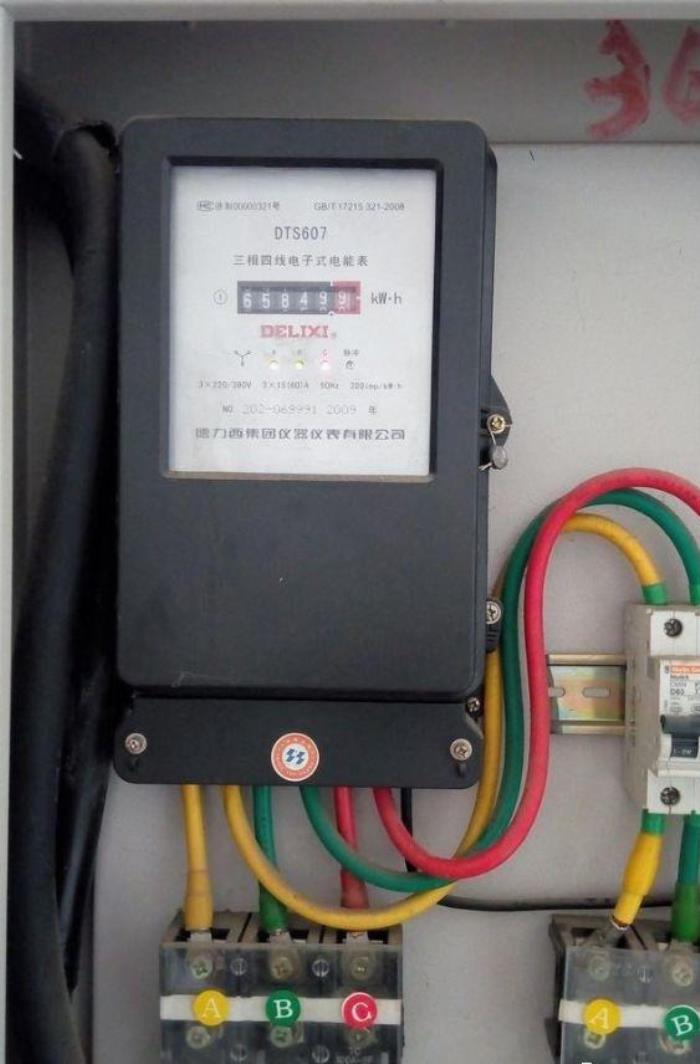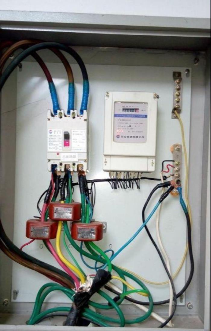 三相电通过电流互感安装,读取电能表的数据时,要将读数乘以电流比值。图五所示的电流互感器的电流比为200/5=40,那么,图四所示电能表的读数为:676.6*40=27064kwh。