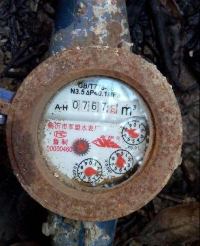 图六所示,水表盘上有一个小数位,读数为:767.6m3。单位:立方米。通常称之为:吨。1m3的水=1吨水。