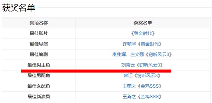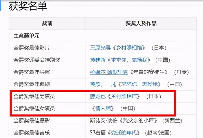 在获奖名单里面,只留下了《情人结》,删除了“赵薇”。