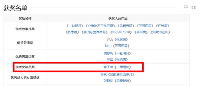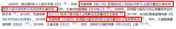 赵薇曾获以下奖项,但在相关词条里面,她的名字消失了。