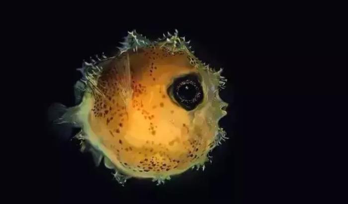 幼体时期的翻车鱼体长仅3毫米左右,它看上去像一个不起眼的小刺球