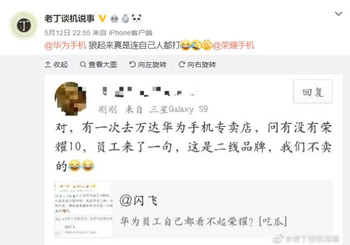 近日就发生一件非常奇怪的事,网友称华为员工自己都看不起荣耀。原因是到华为专卖店问有没有荣耀10,人家员工来了一句这是二线品牌,我们不卖。