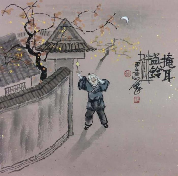 后来,这个故事浓缩成“掩耳盗钟”这个成语,不久之后又演变为“掩耳盗铃”,先前的那个成语反而不用了。现在,人们通常用“掩耳盗铃”来比喻自欺欺人。