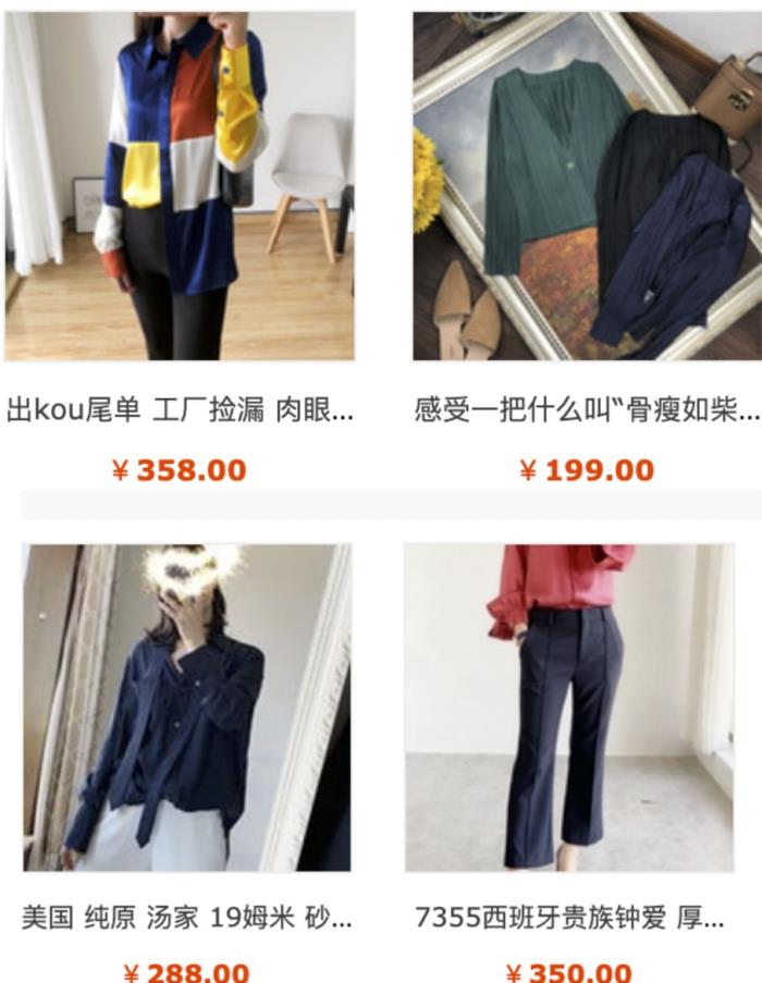 为什么呢?因为特别是秋冬款衬衫,要上档次的,都得是重磅真丝(真丝里最贵的那一种),而何谓重磅呢?18姆米以上的肯定是奢侈级的,16姆米其实已经很好了。一般的卖家,真丝混纺都恨不得吹上天,是不敢标注姆米数的。所以,搜姆米数,可以找到那种起码敢把成分面料标清楚的店,大多隐藏的非常深,但是我敢摸着摸着良心说,就截图的几件衬衫,随随便便绝对是1500+的正常售价。谁还不想升级一下自己的穿衣档次!哪怕是贫民窟少女?!