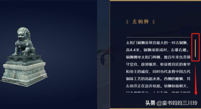 如果点击圆形动物图标,同样如同手持说明书,右侧条可以滑动说明文字:
