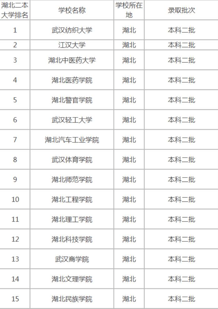 相信很多的同学都是非常的想知道,湖北二本大学有哪些的,它的排名是怎样的,小编整理了相关信息,希望会对大家有所帮助!