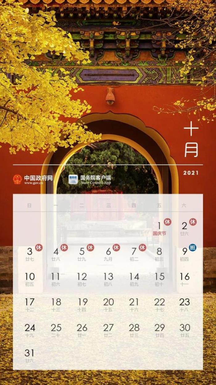 六、中秋节:9月19日至21日放假调休,共3天。9月18日(星期六)上班。