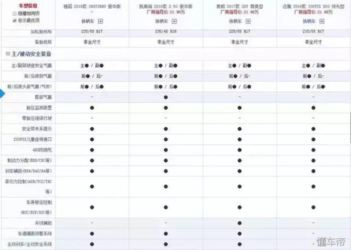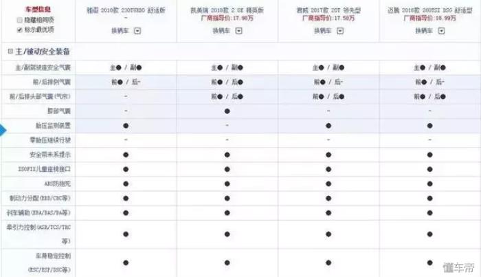 来到中配车型的配置对比上,配备了HONDA SENSING的全新一代雅阁,在主被动安全配置上表现比较出色,而对于其他常规配置相比于竞品也比较齐全,属于主流水平。相比其余三款车,除了HONDA SENSING的优势之外,全新一代雅阁的配置也不算过于亮眼。但是,全新一代雅阁的价格相比其他三款车型要低出两万,如果不算优惠,以中配车型而言,全新一代雅阁的性价比要稍高。但要是算上优惠,迈腾则是在四款车中最高的性价比。