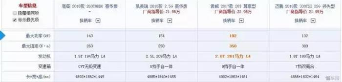 全新一代雅阁低功率版本的动力参数在马力表现上相比凯美瑞,君威,迈腾要稍微高出一些,但是在最大扭矩表现的上,虽然这台1.5T的最大扭矩不算弱,但是除了凯美瑞之外,君威和迈腾都要比全新一代雅阁低功率版本要高,而对于中型车而言,最大扭矩的高低显然要比马力要重要一点。