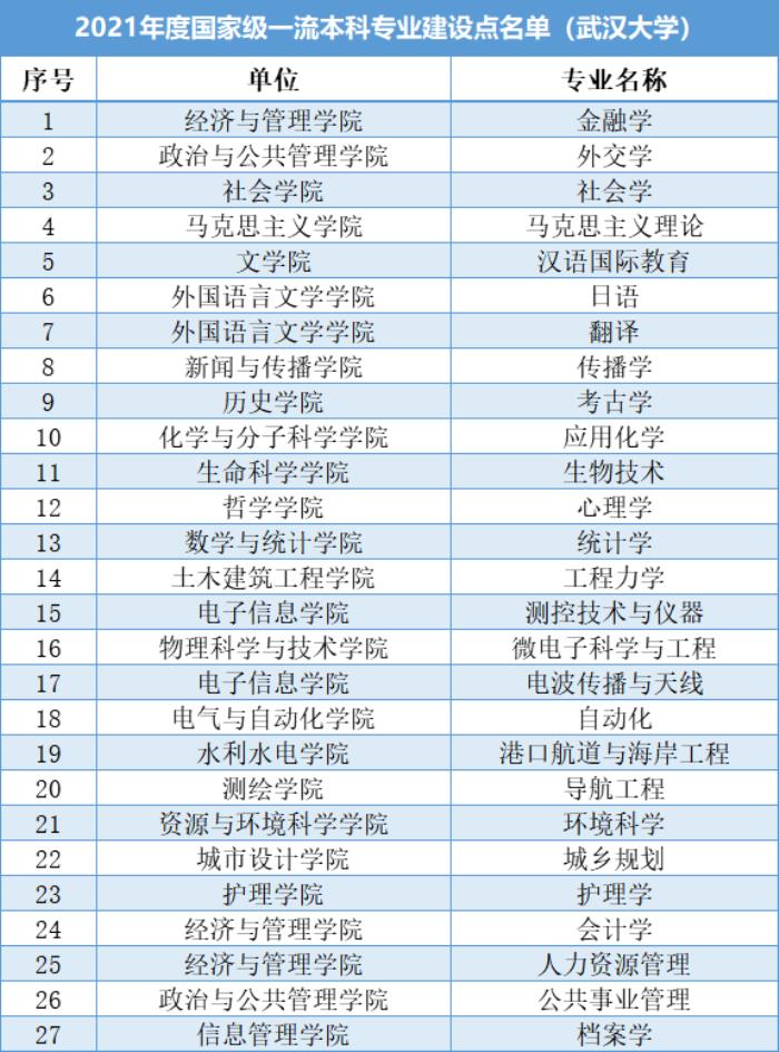 2022年6月,武大新增27个国家级一流本科专业建设点