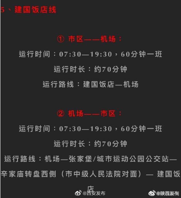 从今天起,西安咸阳国际机场恢复运行机场巴士建国饭店线路,其中,市区——机场方向运行时刻为07:30—19:30,60分钟一班,运行时长约70分钟;机场——市区方向运行时刻为07:30—19:30,60分钟一班。目前,机场巴士运行线路还包括西稍门空港商务酒店线路、西安高铁站线路、火车站陇海大酒店线、西安宾馆线、吉源酒店—曲江华美达酒店线以及咸阳专线。 为保障乘客安心乘坐,机场巴士每班次均进行消毒,各站点均采取微信扫码方式线上售票。乘客需至少提前2小时30分钟乘坐机场巴士,如果想获取更多出行信息,可以在公众号对话窗口留言或拨打机场巴士客服电话:029-8879878。(陕视新闻)