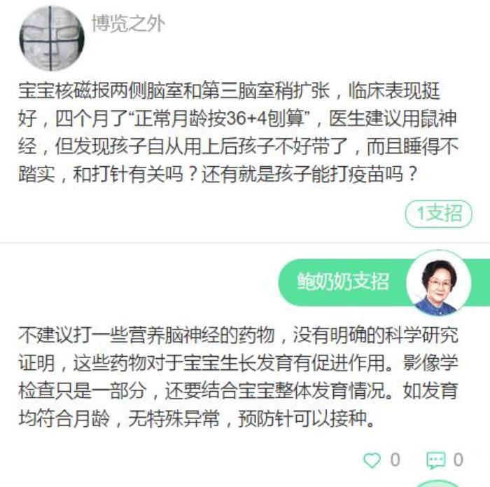 可以在线向鲍奶奶提问啦!关注鲍奶奶的公众号:儿科医生鲍秀兰(id:xiehebaoxiulan),选择“问医生”即可在线向鲍秀兰教授和三甲医院专家们提问!