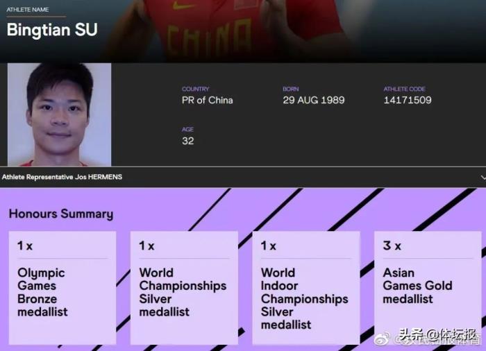 3月21日,世界田联官网的运动员介绍中,苏炳添、谢震业、吴智强、汤星强的资料上都标注了上奥运会铜牌。