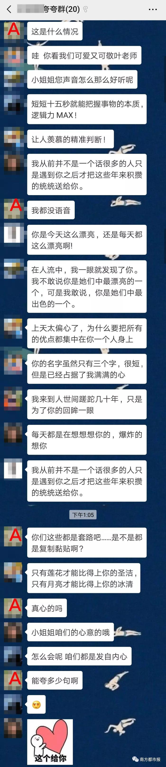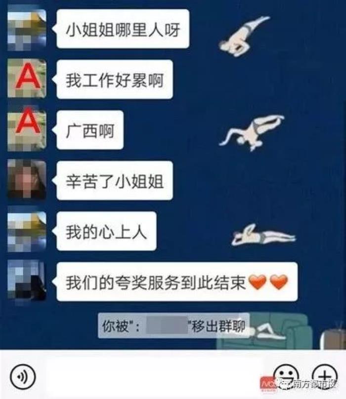 近日,有网友吐槽,在妇女节当天男友拉她进了上百人的“夸夸群”,被群成员夸了整整三分钟。男友还解释,自己是从某宝上买的定制“夸夸群”服务。